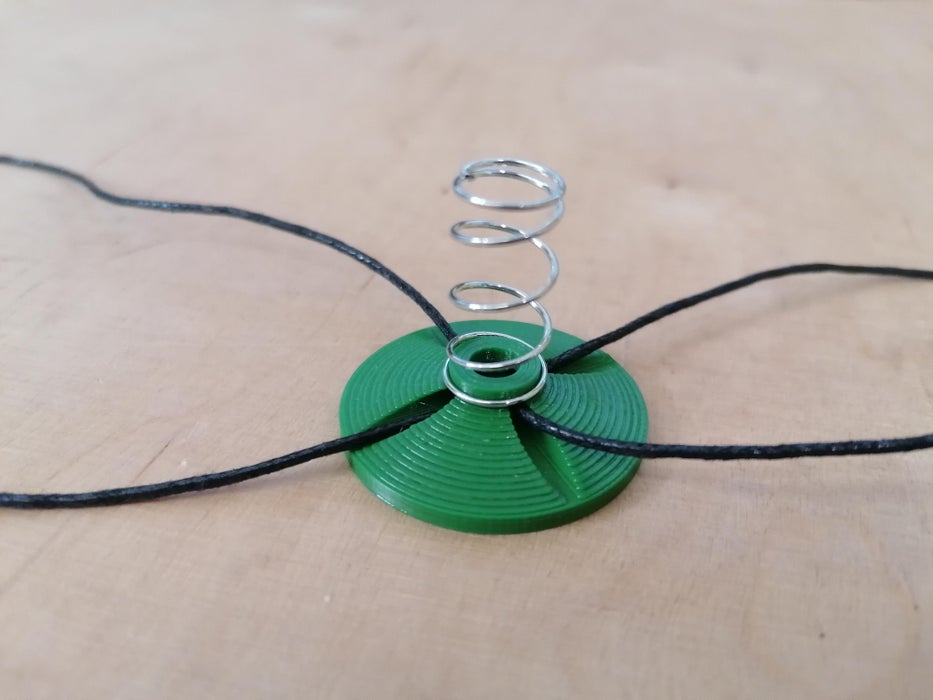 Use the standard_tool_part1 to compress the spring and lock it with the standard_tool_part2. Be careful not to get the strings below the standardt_tool_part2. There have to be two on each side of the part.