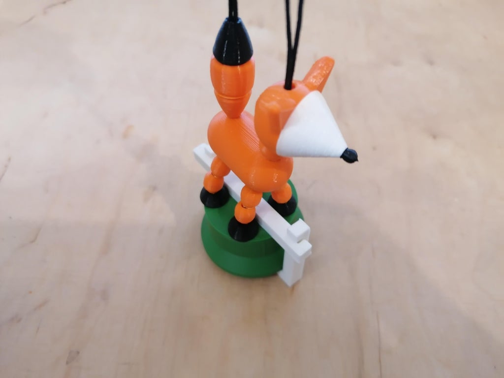 We've designed these collapsible animal toys for 3D printing based on toys from our childhood that were made from wood. When you press the button that is spring-loaded, the strings that hold all the parts together get loosened and that makes the animal collapse. This model was made by Adrien from our 3Demon team.