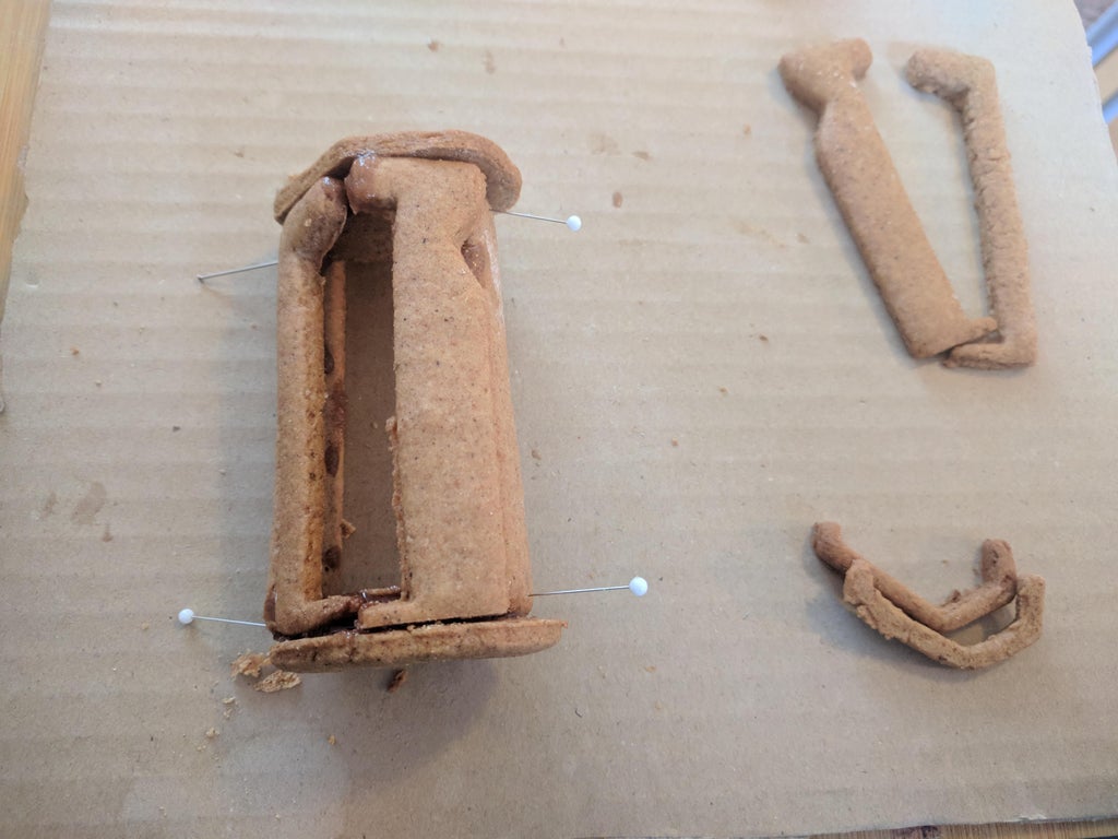 Glue the parts together with the royal icing. Start by assembling the small parts together and later glue the groups of parts together. Let the icing dry after each session.