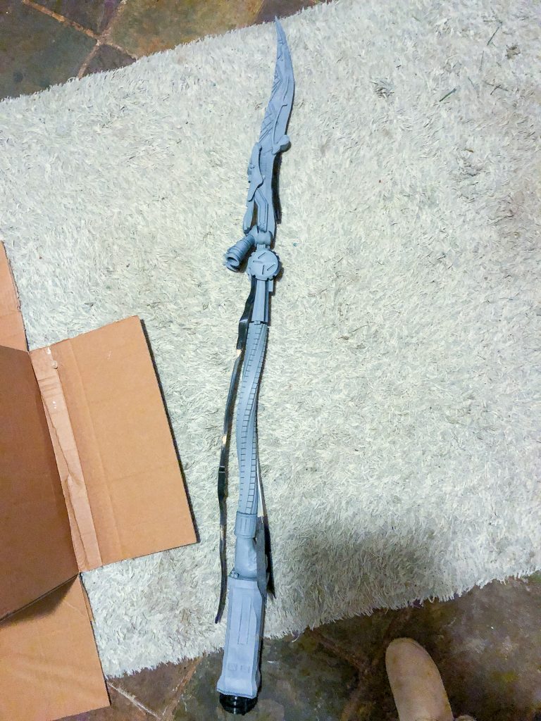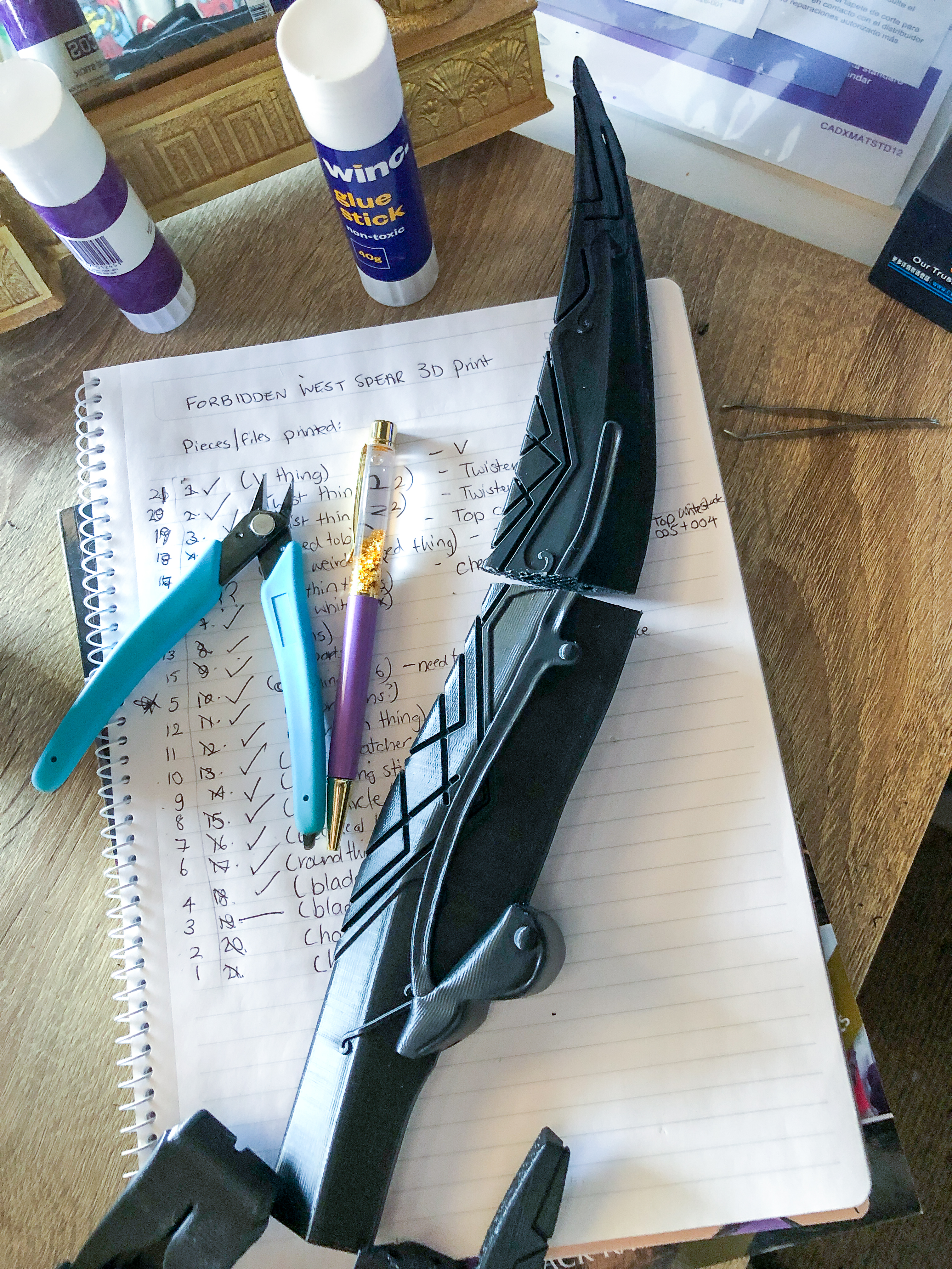 Firstly before 3D printing all the parts, you need to measure how tall your spear should be (use Aloy's photos as a reference), and then you'll need to scale each piece accordingly before sending it to your 3D printer.