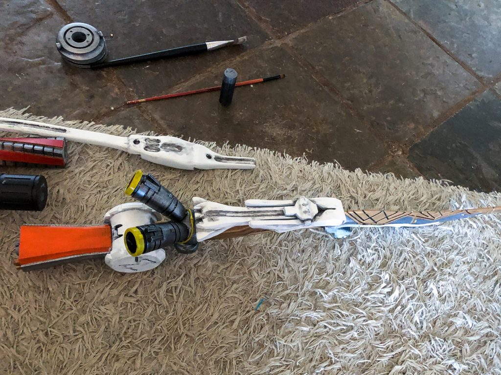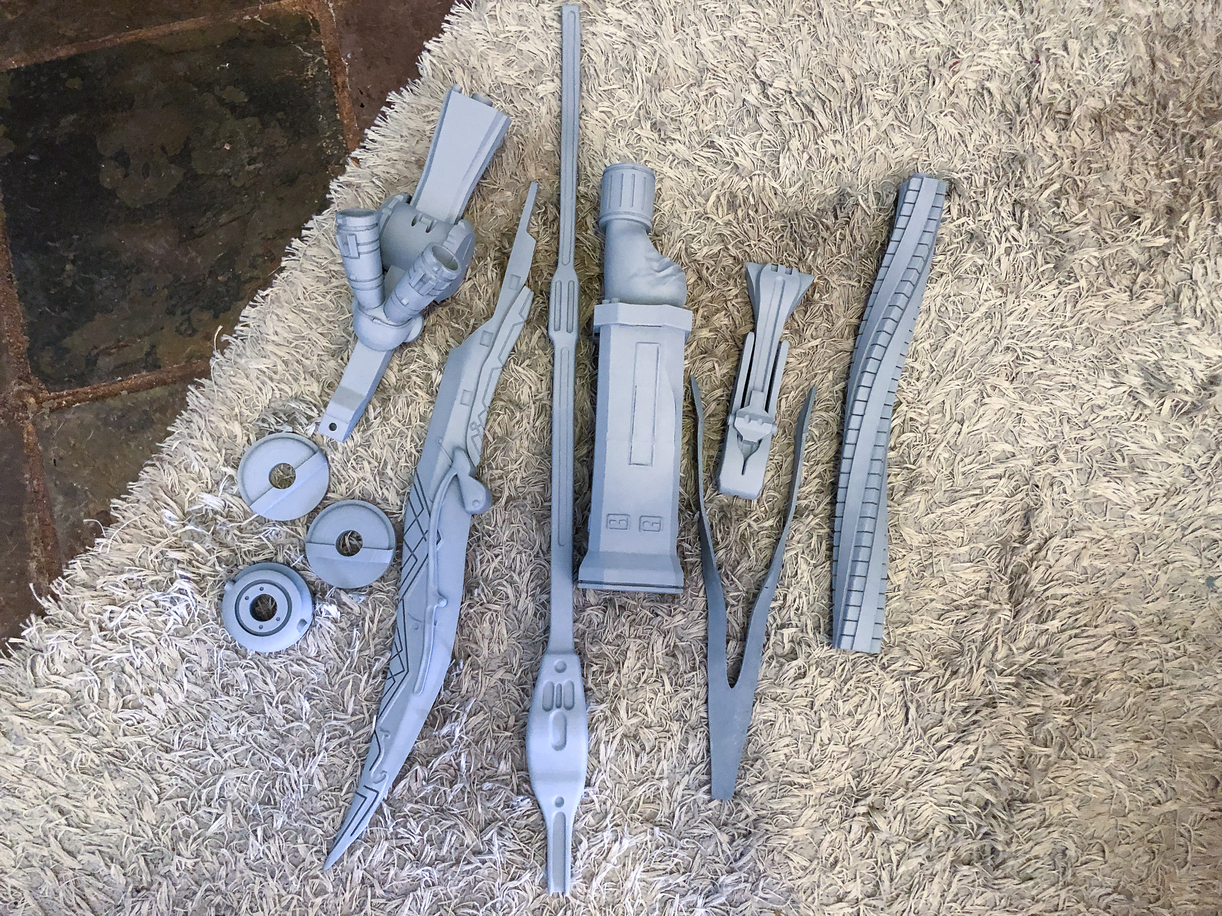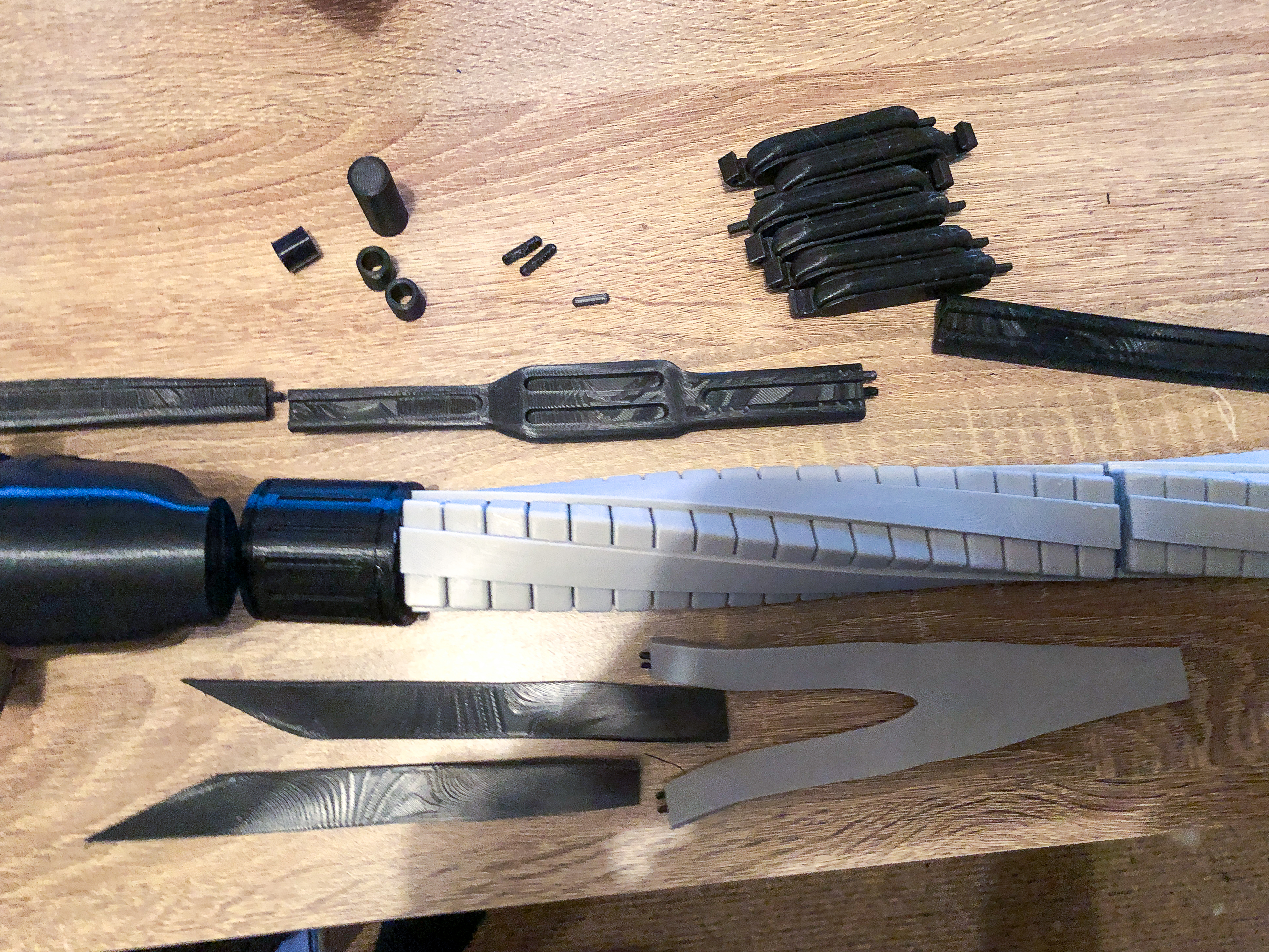Once all the parts are printed, it's time to assemble the Champion's spear! Remove the supports from the pieces, clean them up using sandpaper and figure out where to place them. Then glue it together using superglue.