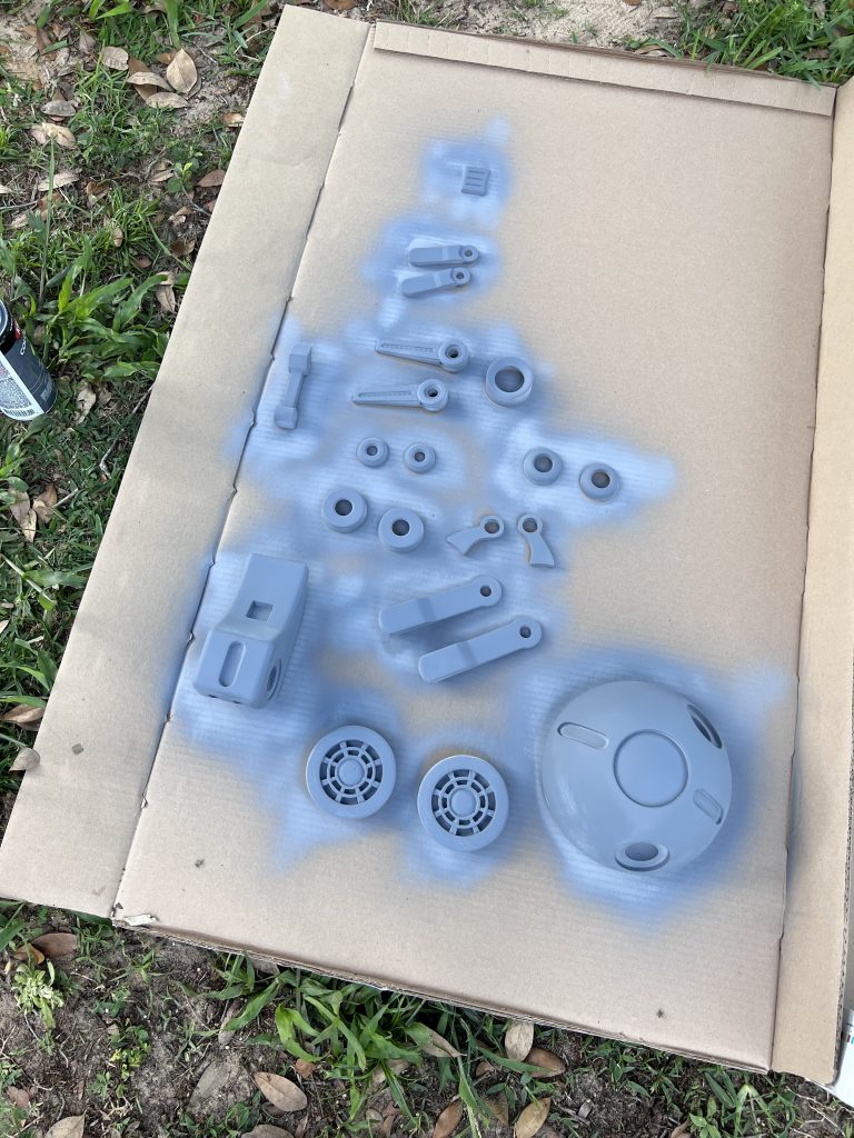For the larger round parts, it is a good idea to get rid of some layer lines and for that, you'll need a can or two of spray filler. Sand down each layer of filler or putty after it dries out properly. Finish with a coat of spray primer/base paint color.