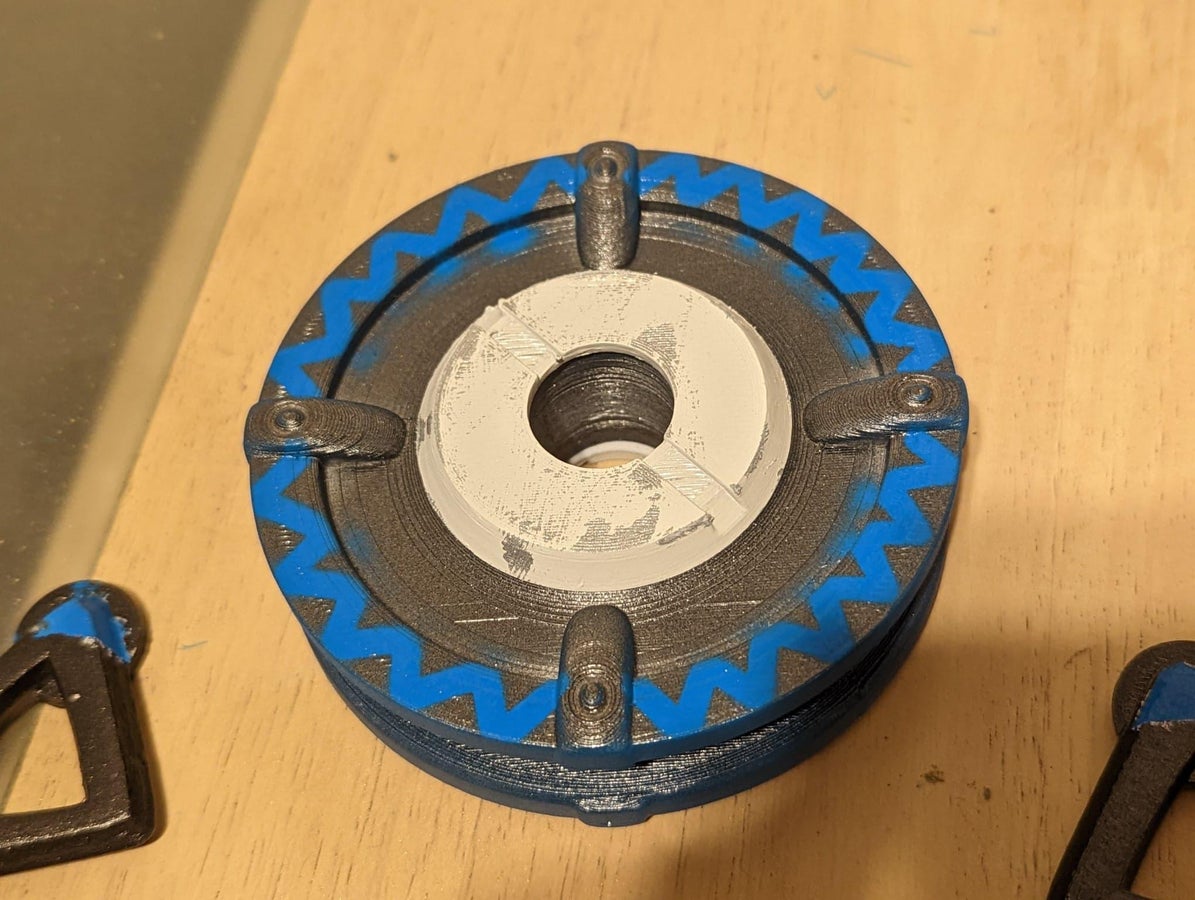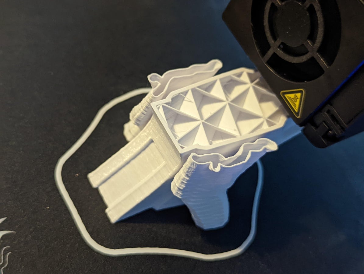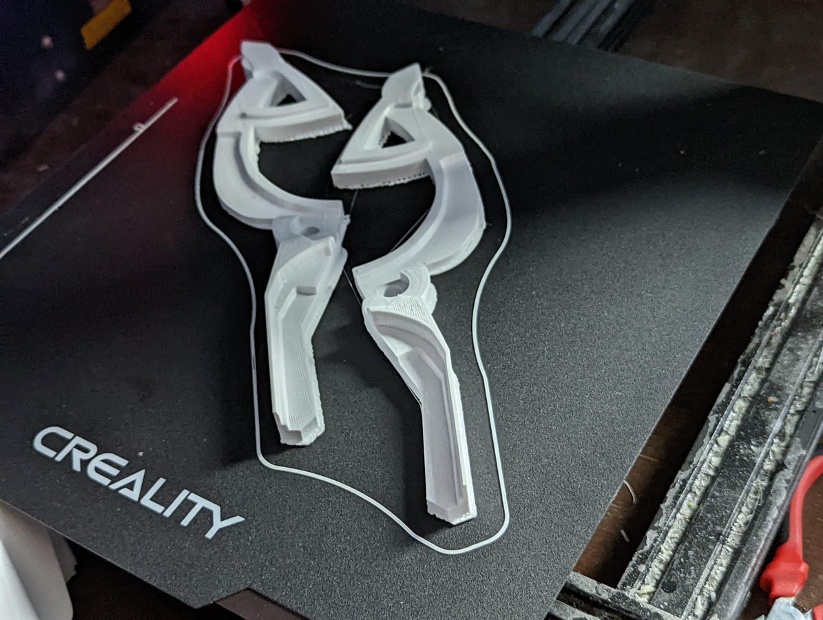 Clear the support material and coat the pieces in spray filler and sand it down for a smoother surface.