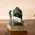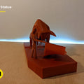 You can simply print the 3D model or you can also post-process it to make it look like the bronze statue in the movie with shiny spots where it gets touched the most.