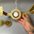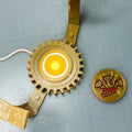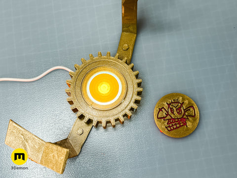 The stand is designed to hold a small IKEA Kapplake LED puck light! Simply use double-sided tape to secure the light inside the gear wheel section, then snap on your favorite cap. Just press the cap to activate the light for a glow.