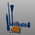 The download contains pieces of the model ready to be 3D printed on a 200 mm print bed and files that are not cut into smaller pieces. All cut parts are placed on the print bed as we would print them to save you time.
