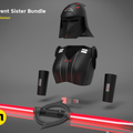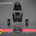 This collection include a wearable armor, helmet and lightsaber of Seventh Sister from Star Wars universe. As the model is quite big, it is meant to be post-processed. You’ll get parts cut into smaller pieces (STLs) that are ready to be 3D printed on a 200mm bed size 3D printer and also complete files (OBJ, that are not cut into smaller pieces