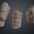 The files are designed as wearable cosplay pieces and feature convenient attachment points for leather/velcro straps.