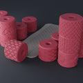 The larger rollers create textures that work well on EVA foam, clay, cake fondant, or dough.