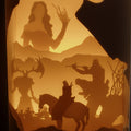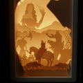 It uses a regular IKEA STRIMSÄV LED spotlight, which slides into a rail on the back (with a button) so you can shift the light around and press it to turn on/off whenever you want. Just slot the printed sheets into the box - different placements make different effects, so it’s fun to mess around with it.
