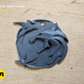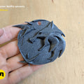 Digital 3D printable model of the medallion from The Witcher Netflix series. It shows Geralt's wolf, Yennefer's star, and Ciri's swallow.
