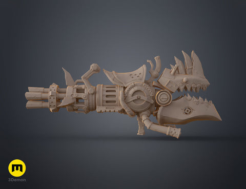 This is a digital 3D printable Jinx Rhino Gun model from Arcane's final episode. The drum of the prop is mounted on an axle, which allows the barrel to rotate.