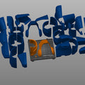 The download contains pieces of the model ready to be 3D printed on a 200 mm print bed (STL) and files that are not cut into smaller pieces (OBJ). All cut parts are placed on the print bed as we would print them to save you time.