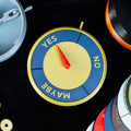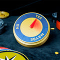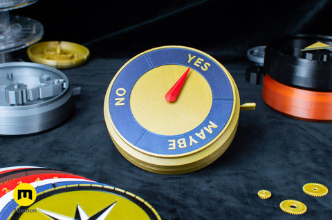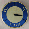 Pull back the spring-loaded lever and upon release, the pointer will start spinning. Then the answer you have been searching for will be revealed.