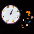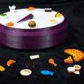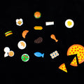 The color changes are done in the slicer with a simple layer change. No need for a multi-material 3D printer. The food pieces have 3MF files available where the color changes are preset for you.