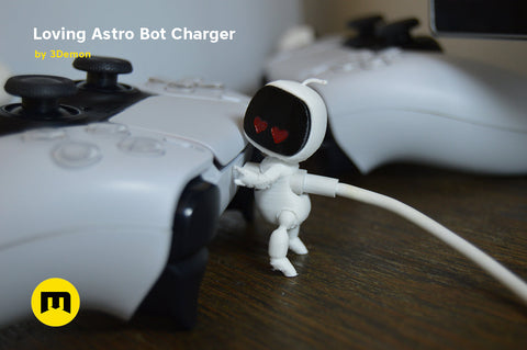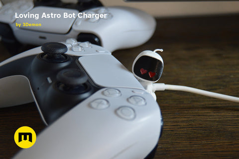 These little bots are characters from the free PS 5 game Astro’s playroom. In the game, all of the consoles get some love from these adorable robots except for the PS 5 generation of products, so we thought we’d make our own to hug the console and controller and while it's doing it, it might as well charge it :)