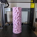 The largest part is the roller which is 180 mm tall. The pattern goes infinitely around the roller. To create both hemispheres of the brain just flip it over and do the other side. The edge on one side is there on purpose to create a line between the two halves of the brain so keep it towards the middle of the dough. You can also print handles for the roller which we’ve included but for this roller I think it's unnecessary to print because it doesn’t have sharp edges and you won’t have to push hard into the dough. It’s more useful for other rollers that we’ve created.