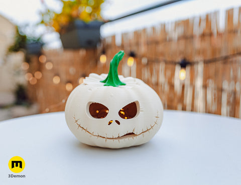 This is a digital 3D printable model of Jack Skellington Pumpkin Lantern.