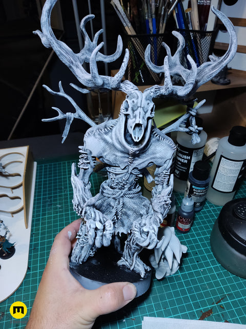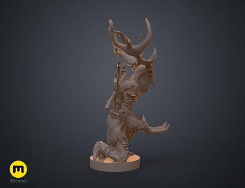 A leshy or Leshen is an ancient and powerful forest spirit. Possessing a deer skull as a head and tree-like limbs. The statue is inspired by the world of The Witcher.