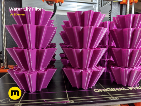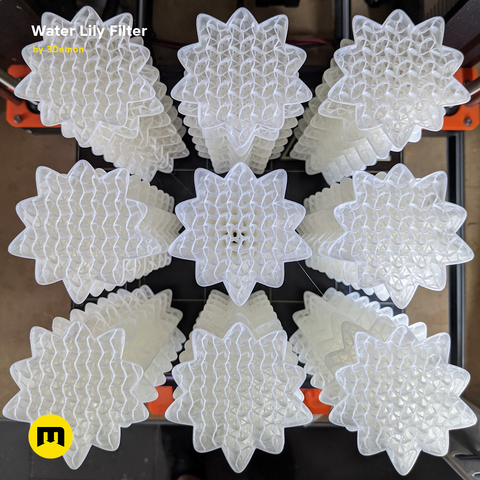 We’ve done some calculations and when printed with a 10% gyroid infill at 0.2 mm layer height it has a surface area of 6500 m2/m3 compared to only 300-800 m2/m3 of media made with conventional manufacturing methods which costs about. So in theory, printing one bag of these flowers is like buying 10 bags of traditional filer media balls.