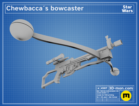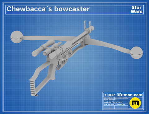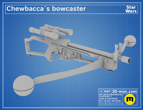 This is a digital 3D printable model of the Bowcaster of Chewbacca.