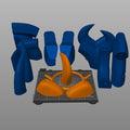 The download contains pieces of the model ready to be 3D printed on a 200 mm print bed (STL) and files that are not cut into smaller pieces (OBJ). All cut parts are placed on the print bed as we would print them to save you time.