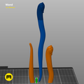 The download contains pieces of the wand ready to be 3D printed on a 200 mm print bed and files that are not cut into smaller pieces. All cut parts are placed on the print bed as we would print them to save you time.