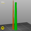 The download contains pieces of the wand ready to be 3D printed on a 200 mm print bed and files that are not cut into smaller pieces. All cut parts are placed on the print bed as we would print them to save you time.