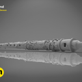 The download contains pieces of the wand ready to be 3D printed on a 200 mm print bed and files that are not cut into smaller pieces. All cut parts are placed on the print bed as we would print them to save you time.