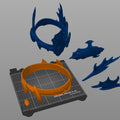 The download contains pieces of the model ready to be 3D printed on a 200 mm print bed and files that are not cut into smaller pieces. All cut parts are placed on the print bed as we would print them to save you time. The stone is a separate piece and can be replaced with a real one.