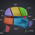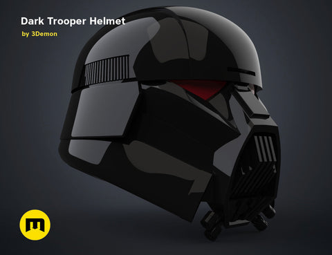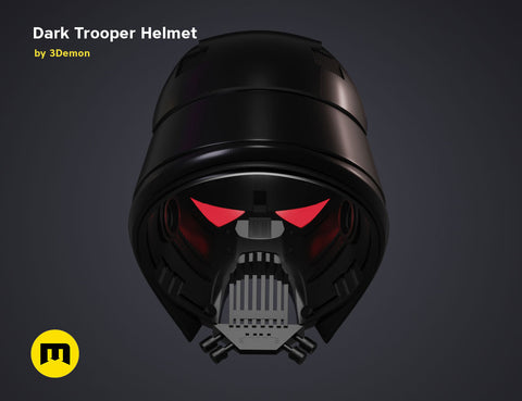 It was carefully modelled to closely resemble the ferocious Dark Troopers. The model also contains optional part that can be put on the back of your neck to make it look like a Dark Trooper’s neck. Most parts are connected via pins that can also be printed. We recommend using a red plastic sheet instead of the eyes provided. The filter grid is put in place from the inside.