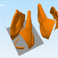 As the mask is quite big, it is meant to be post-processed. We recommend a layer height of 0.1 to 0.3 mm on FDM printers. All parts are aligned to the printing platform for easy manipulation. Most of the parts need minimal or no use of printing supports to save printing time and filament. For reliable printing, we also recommend setting a brim to the masks shell parts, because of their height and low thickness. It will ensure, that the parts will not come off the printing platform during the printing process. Printing settings will vary greatly depending on your specific printer.