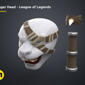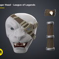 This is a digital 3D printable model of the head and cosplay accessories for a Rengar costume from the videogame League of Legends.
