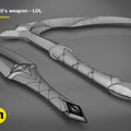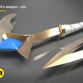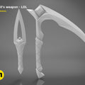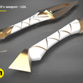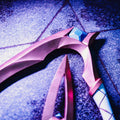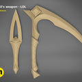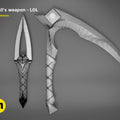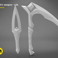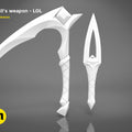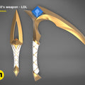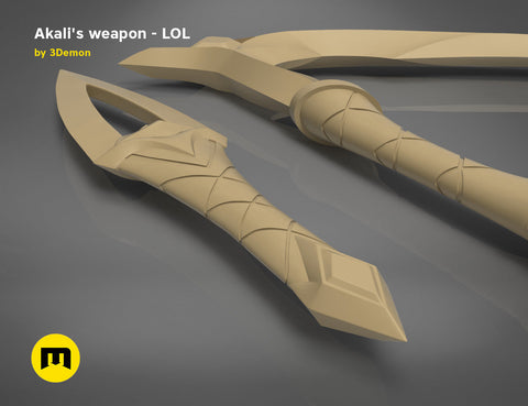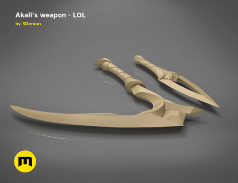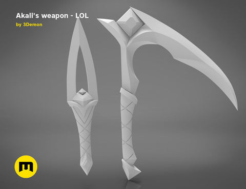 Akali is a champion from League of Legends, she is a shadow ninja. These are digital 3D printable models of her weapons - a dagger and scythe in KDA skin.
