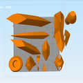Files contain cut pieces of the weapon ready to be 3D printed on a 200 x 200 mm bed and uncut OBJ files.