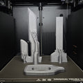 The download contains pieces of the model ready to be 3D printed on a 200 mm print bed (STL) and files that are not cut into smaller pieces (OBJ). All cut parts are placed on the print bed as we would print them to save you time.