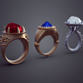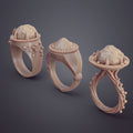 This is a digital 3D printable model of 3 Elven Rings from Lord of the Rings: Rings of Power.