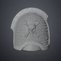 This is a digital 3D printable model of the Deathwatch Shoulder Pauldron for cosplay.