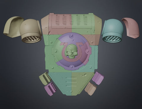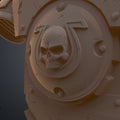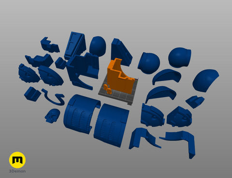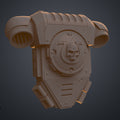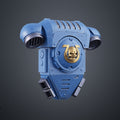 Digital 3D printable model of  Space Marine Power Armour Jetpack for cosplay. The Jetpack is hollow and designed in 2 versions - clear and with Ultramarine skull and symbol.