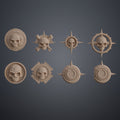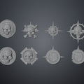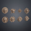 The download includes a total of 16 badges, 8 with attachment holes and 8 without. They perfectly complement our Space Marine Power Armour.