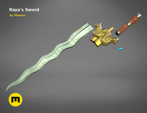 This digital 3D model is a full-size replica of Raya’s Sword. The sword is quite big and is meant to be post-processed.