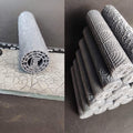 The download contains 11 original texture rollers (STL) ready to be 3D printed and 1 grid pattern roller.