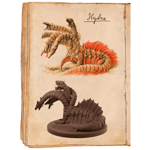This is a digital 3D printable model of a Hydra miniature for tabletop games.