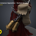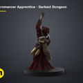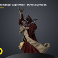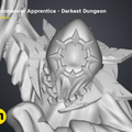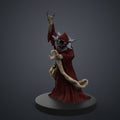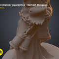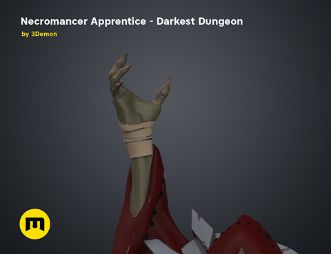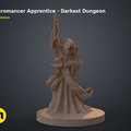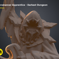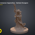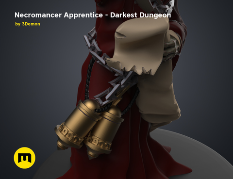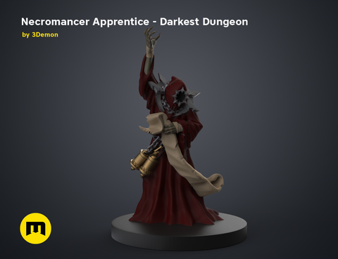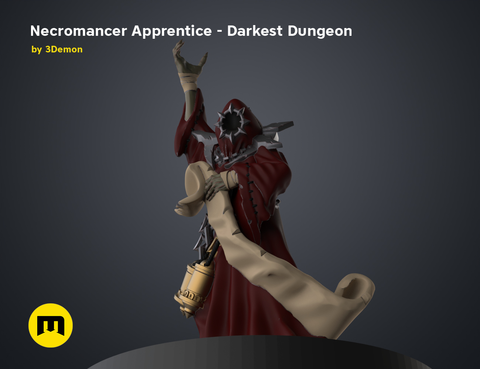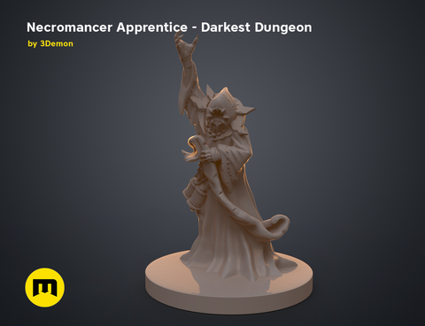 This is a digital 3D printable model of a Necromancer Apprentice figure for DnD or other role-playing tabletop games. The boss necromancer figure is inspired by the Darkest Dungeon video game.