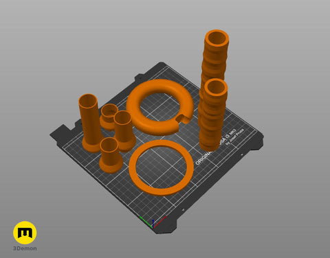 The download contains pieces of the model ready to be 3D printed on a 200 mm print bed (STL) and files that are not cut into smaller pieces (OBJ). All cut parts are placed on the print bed as we would print them to save you time.