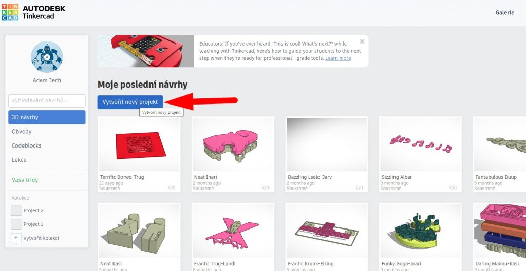 Once you've converted your jpg image to svg (or downloaded/designed your own svg) you need to open Tinkercad. It's a free, online and simple tool to use. Once you're there, click "start a new project" (sorry, my screenshot is in my native language haha) Then click "Import" and drag your svg file in there.