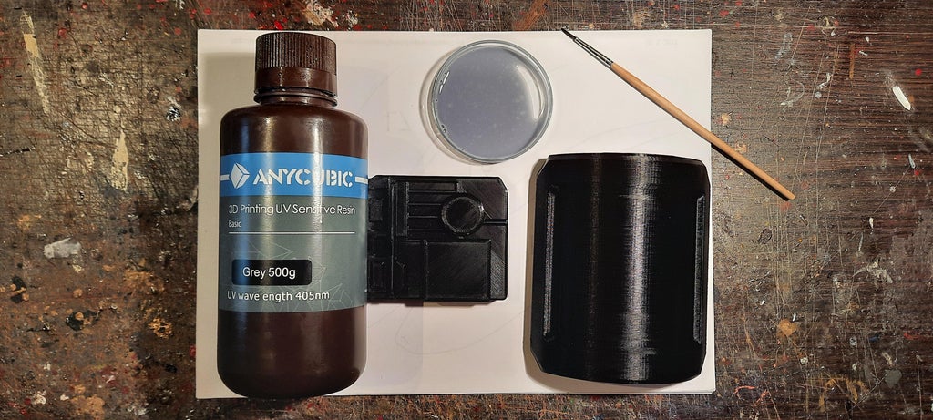 2) Creating a smooth layer with epoxy resin - (XTC 3D was used in this model) - mix the two liquids as described on the packaging. Apply the mixture to the surface of the model. It is ideal to use a brush, the strokes won't be visible on the surface. The processing time is 10 minutes and the curing time is approximately 4 hours (depending on the amount of resin and temperature in the room). The surface of the model must be cleaned and degreased before applying the resin. The whole package will last for a lot of printed models, so if you print often or if you post-process larger models, the resin is definitely worth the investment. Another advantage, in addition to smoothing the model, is its strengthening.