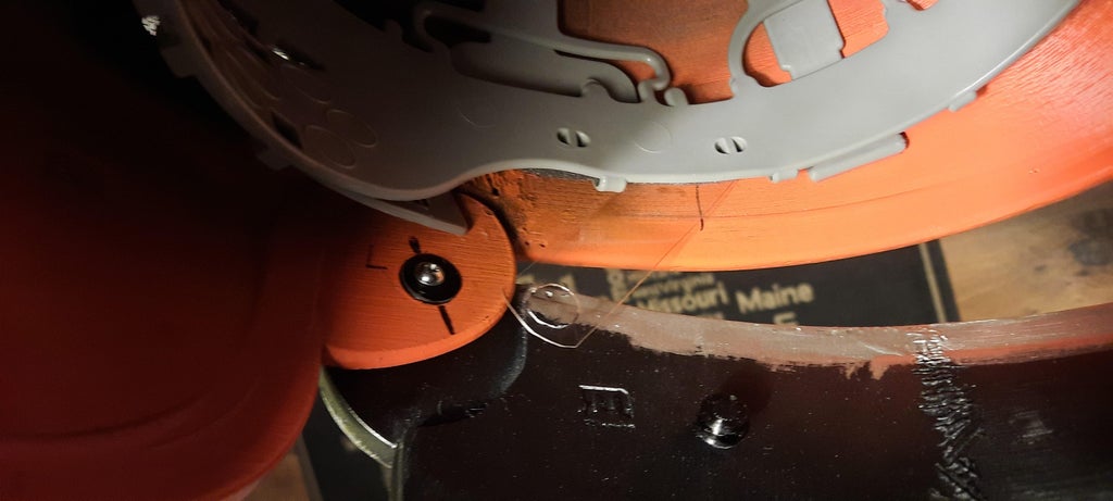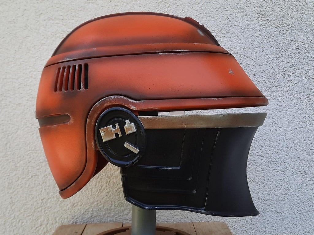 Fennec Shand wore her helmet closed, or the narrow window was ajar. Therefore we had to stabilize both positions. The open helmet is given by the construction of the helmet itself, the closed one must have a support so that the lower part does not fall when worn. We solved it with a piece of translucent foil, which is used, for example, as part of a shield for medics. We added two rivets, printed from PETG, to the inside of the helmet and glued them with instant glue. The foil is connected to the upper rivet so that it does not slip out, on the contrary, the helmet can be removed from the lower rivet so that the owner can wear it open or closed.