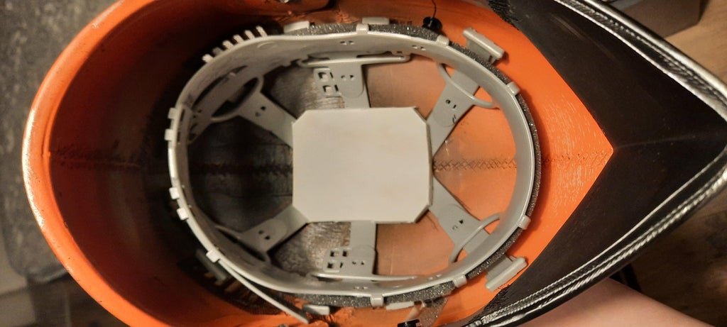 In order for the helmet to fit and work well, a few minor adjustments had to be made. We glued a hard hat inside to make it adjustable and more stable.