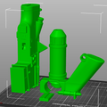 The download contains pieces of the blaster ready to be 3D printed on a 200 mm print bed and files that are not cut into smaller pieces. All cut parts are placed on the print bed as we would print them to save you time.